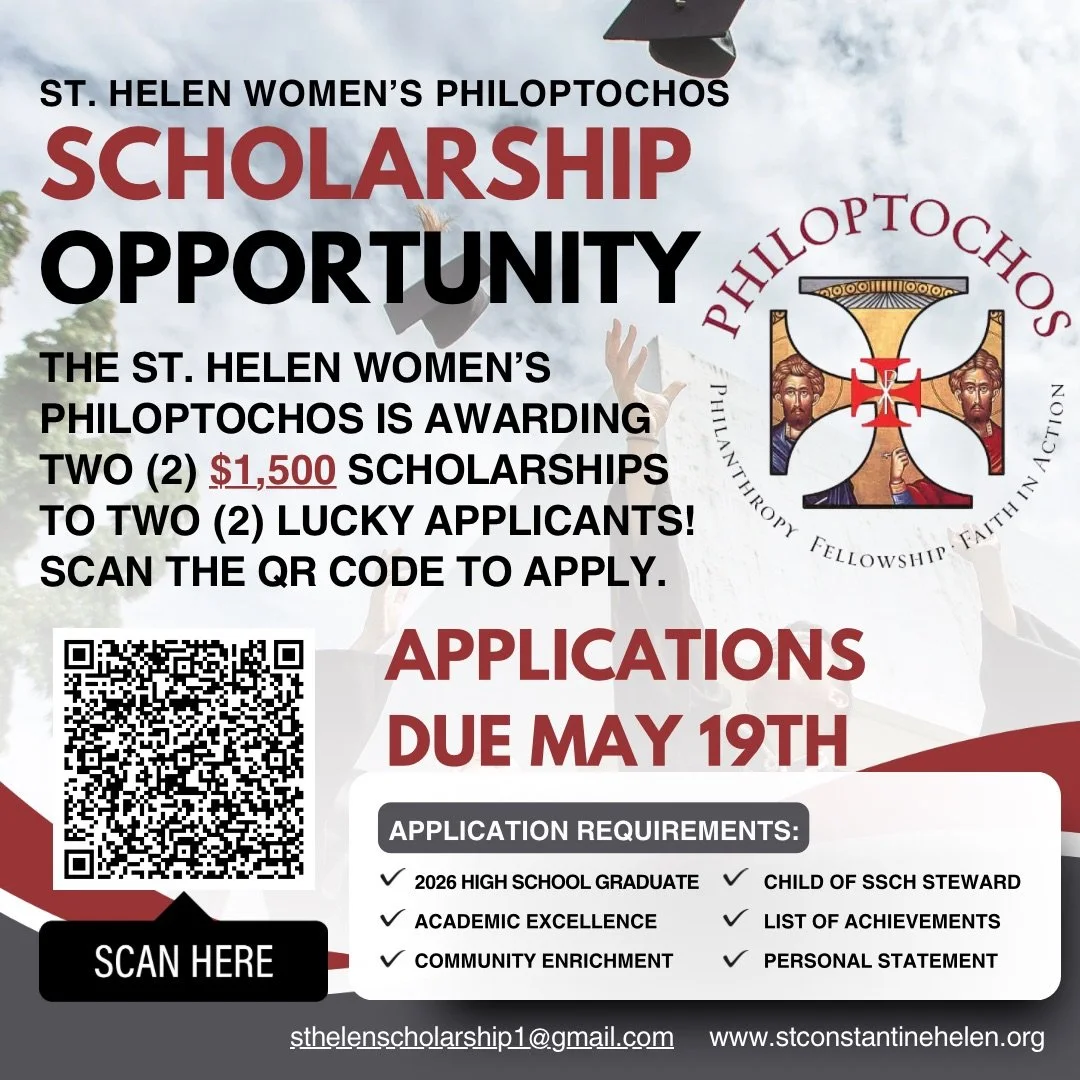 Scholarship Opportunity Apr 27 Written By Constantine Helen The St. Helen Women’s Philoptochos is awarding two (2) $1500.00 scholarships to TWO 2026 Graduating Seniors. Click the flier below for application information. Constantine Helen